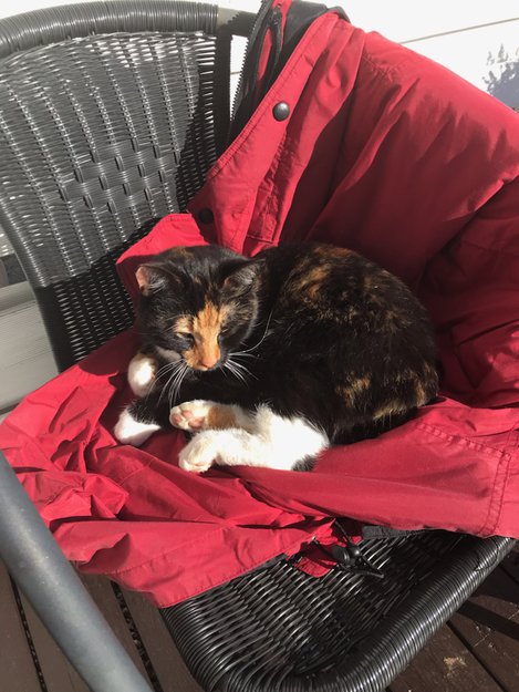 Hun er en rolig kastrert katt, og bor sammen med sin 9 mnd gamle kattunge.