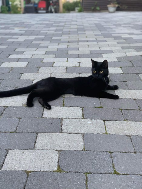 George er svært vennlig og glad i å gå ved siden av hvem som helst. Hu er ikke redd for hunder.Hu har ID CHIP og er sterilisert.
