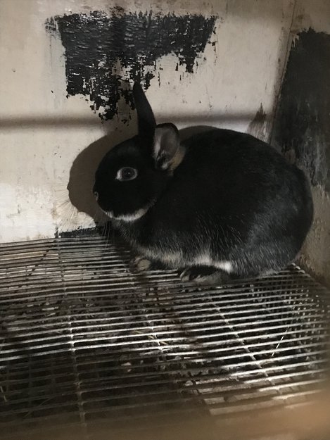 Vi fant en kanin i hagen vår. Har fått tak i den og satt den i bur.