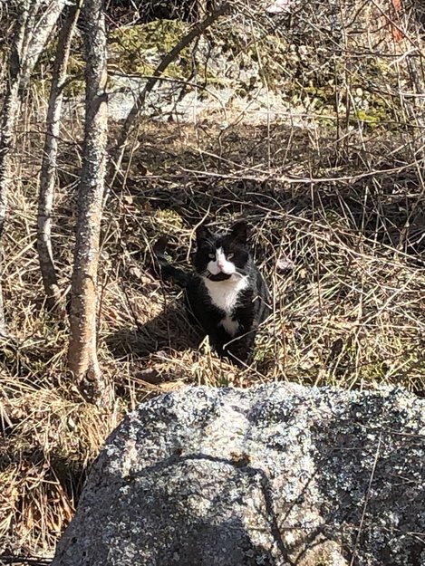 Noen som eier denne katten? Den er livredd mennesker og har blitt observert til og fra på Tjaberg området.