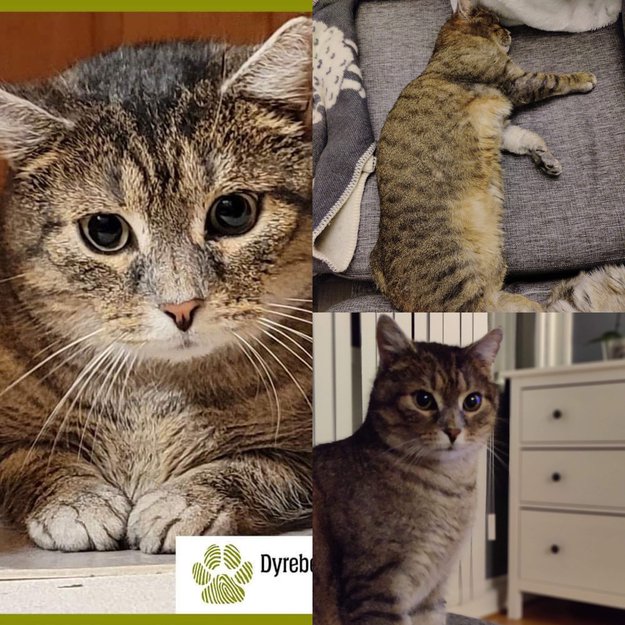 Eros (hans registrerte navn)/Milo, kom til oss 14.04 fra Dyrebeskyttelsen. Han kom seg ut på verandaen 16.04 og hoppet ned i hagen. Forsvant i mørket. IKKE KJENT I OMRÅDET. Stor katt, spraglete, grå/brun, med lysere partier på bryst, mage og på poter.