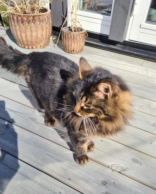 Oppdaget katten i garasje i løvsethaugen. Den har vært der en ukes tid fra ca 10. April. Har søkt etter eier uten hell.