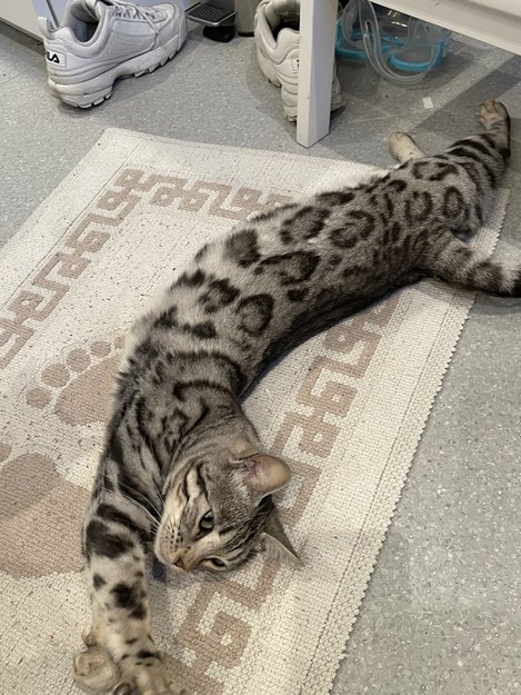 Kan oppfattes som ganske mørk forfra og ganske lys bakfra. Helt hvit mage. Liten av størrelse og kan se ut som hun har dårlig balanse noen ganger når hun går.