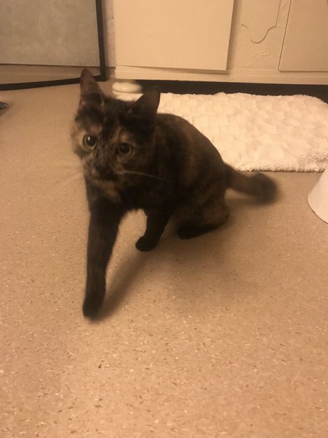 Kom en kattunge på døra hos oss i kveld. Vil veldig gjerne hjem.