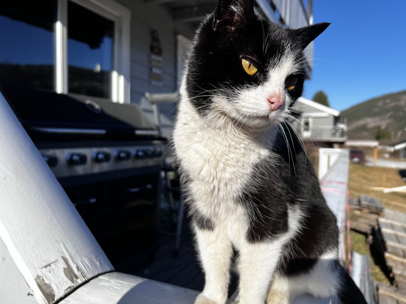 Katten har gått rundt huset vårt i noen dager. Vi luftet huset og hadde opp et vindu hvor kattematen til vår katt sto. Katten kom seg inn vinduet og fikk tak i maten. Deretter begynte den å sove utenfor inngangsdøren vår. Virker slapp, tørst og sulten. Veldig oppmerksomhetssøkende men også litt skitten. Veldig kosete og følger etter oss.
