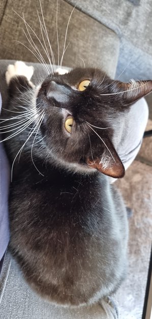 Han er en stor katt som er veldig snill, kosete, nysgjerrig og prater mye. Han er chippet. Han er svart og hvit, ser ut som har har hvitt skjegg under haka. Vi savner han veldig mye!!