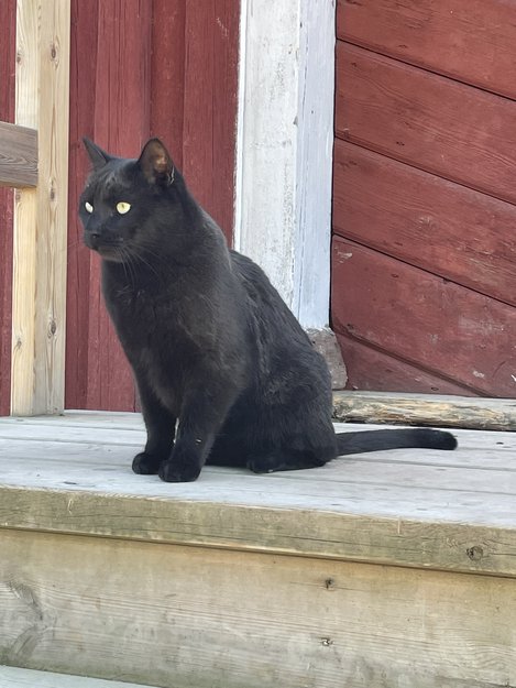 Er det noen som savner denne? Sort hannkatt med noen få hvite pelshår på brystet. Trivelig og uredd, kastrert men synlige poser, ikke chip (eller defekt chip) "panteraktig" Dukket opp på Svartskog, hender katter kommer langveisfra hit via motorveien om de har fått skyss.