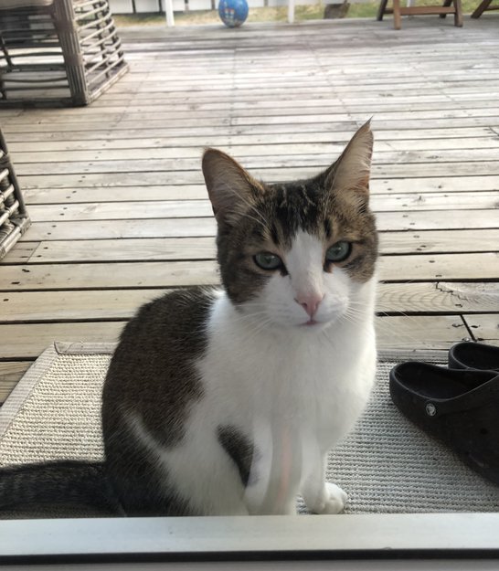 Fin ung katt har holdt seg på vår terrasse siden vi kom hjem fra påskeferie 18.04.