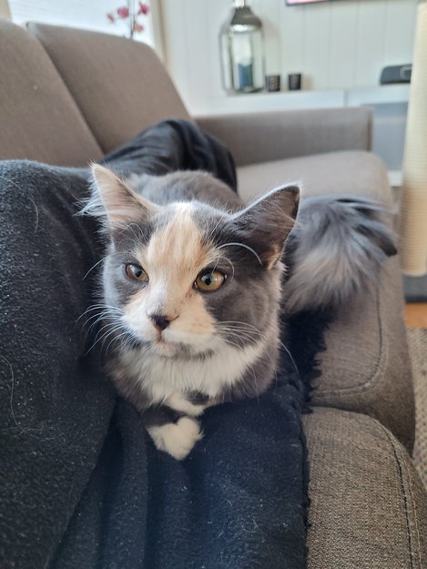 Grå, hvit og fersken hunnkatt savnet i Holmestrand