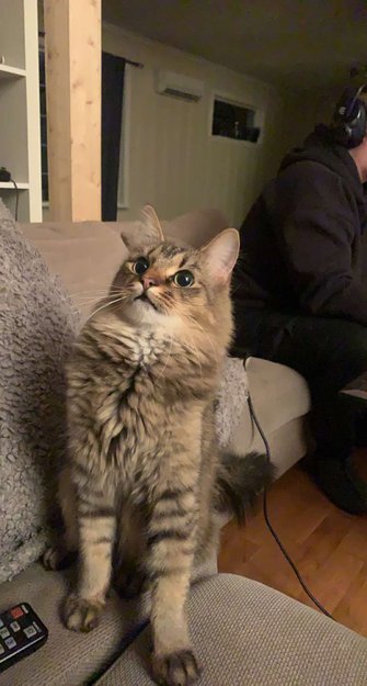 Han er svart under alle potene, har lang fluffy hale og veldig pen å se på. Små poter og slank