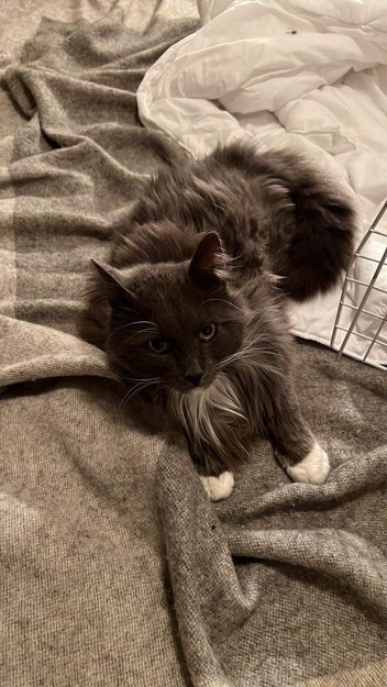 Grå og hvit. hannkatt funnet i Tynset
