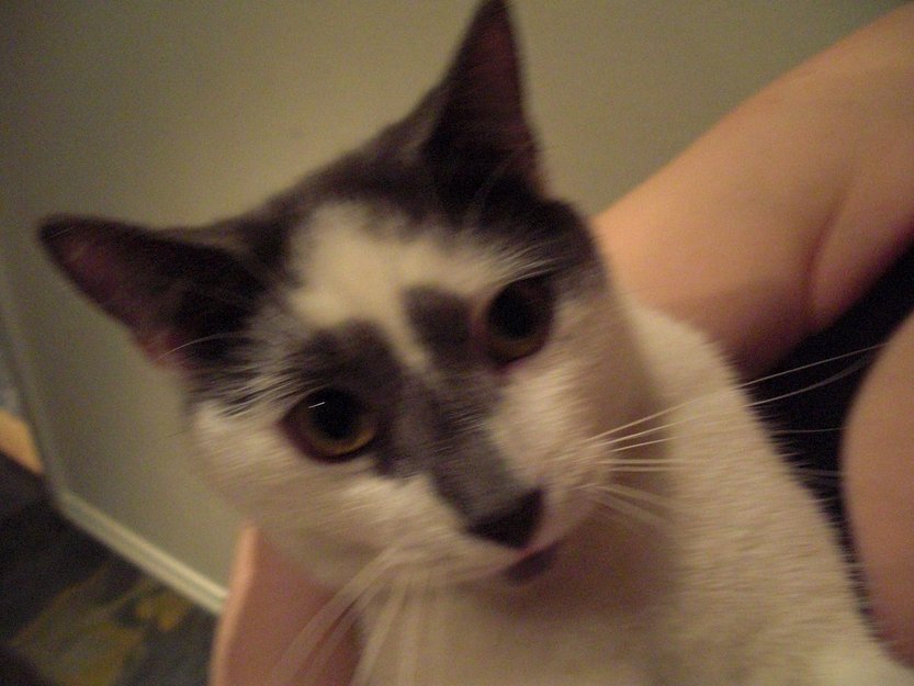 Hankatten var Biff, forsvant fra hjemmet vårt 22/6. Er 2 år gammel, kastrert og chippet. Han er korthåret, grå og hvit. Er liten av vekst, og litt sky av seg.
