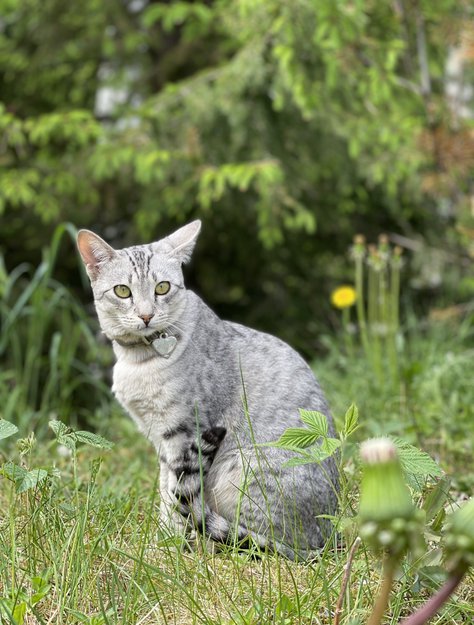 Savannah katt, relativt liten. Kan være kontaktsøkende og snakker veldig mye.