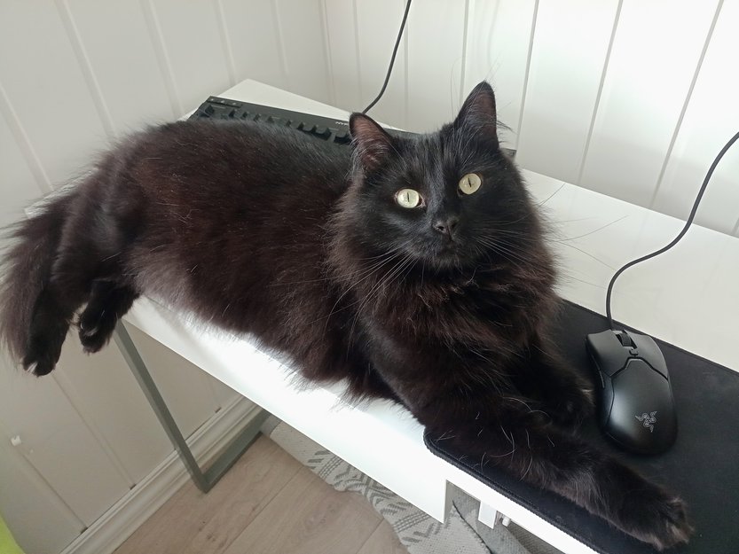 Langrehåret helt svart katt. Han har vært borte siden April 28 kl.16.