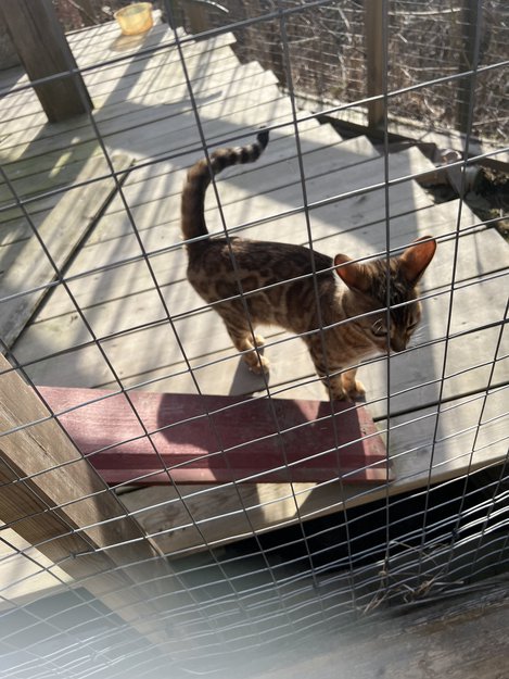 Brunspottet liten bengaljente på 2 år. Veier rundt 3.5- 4 kg. Hun er chippet.