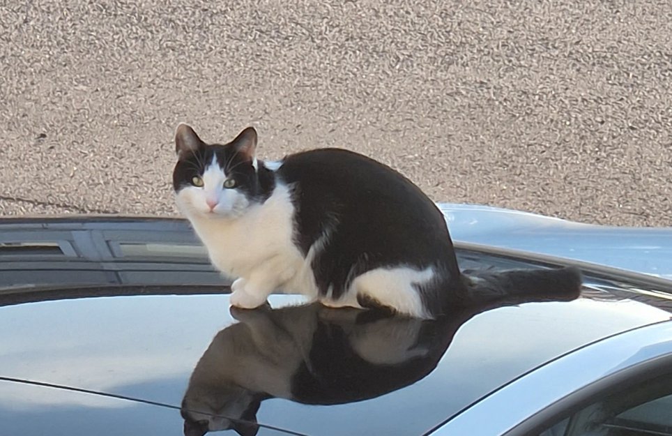 Spar er ikke stor til å være hannkatt, han er sort og hvit. Ingen Sorte flekker i ansiktet. Han kan lyde navnet sitt Spar. Liker godbiter og godstenger. Hvis du ser han prøv å lokke han inn og ring meg snarest.