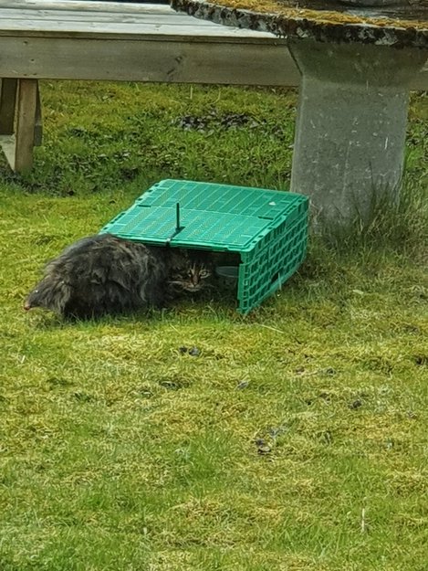 Katten ble fanget og tatt til veterinær. Ble avlivet da den var veldig syk ❤️
