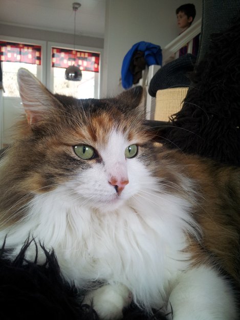 Katten vår ble borte fra tirsdag den 3. juli litt utpå dagen. Hun har vært hos familie i Klæbu, mens vi har vært på ferie. Det er merket av på kartet hvor hun ble borte. Selv har hun adresse på Stavset i Trondheim.