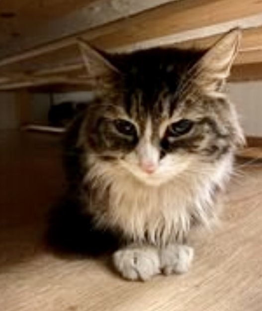 Tam og ikke chipet hunkatt har blitt tatt inn sammen med sine 3 unger.