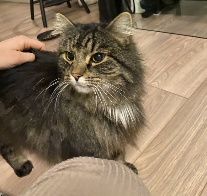Den kom plutselig å banket på veranda døren vår, og ville inn. Veldig kosete. Har vært observert i gaten tidligere i uken også.