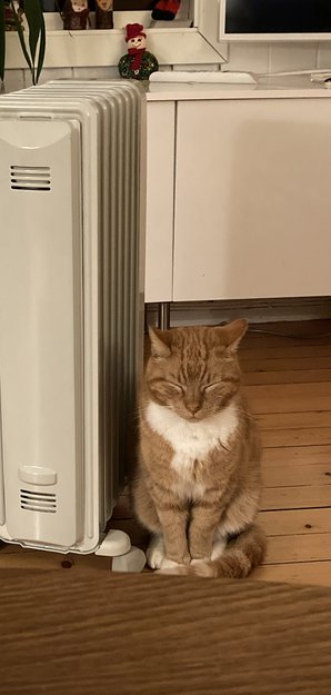 Katten er mørk oransje, Hvit på brystet og hvite poter, han har også et hjerte på ene siden. Han er veldig redd og nervøs, så han liker ikke fremmede.