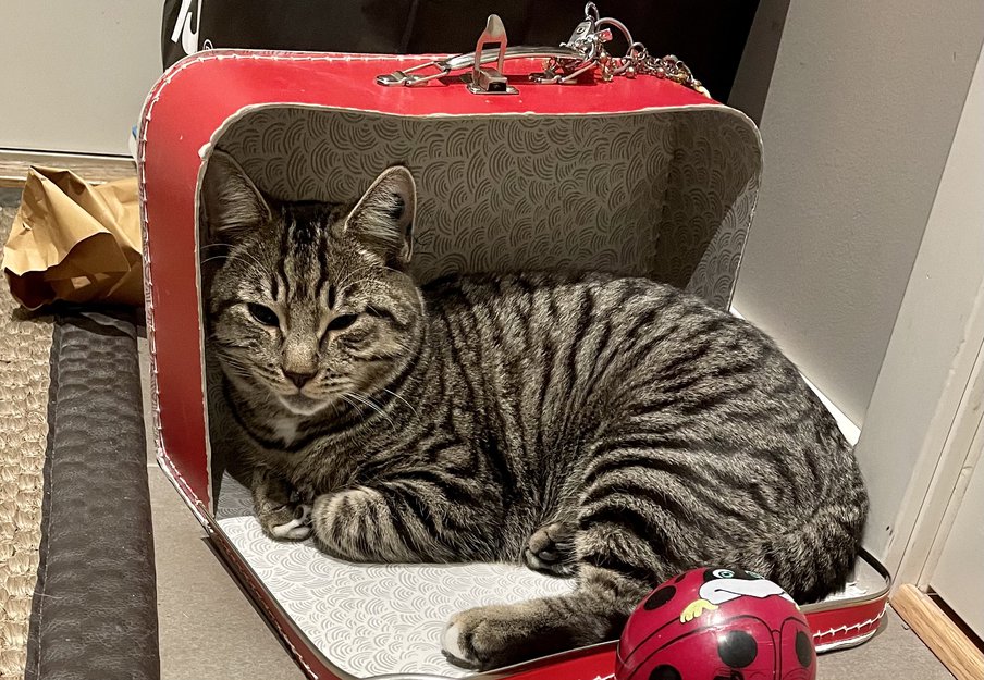 Veldig sosial katt. Han kan vandre langt unna hjemmet. Noe tykkere hale enn normalt.