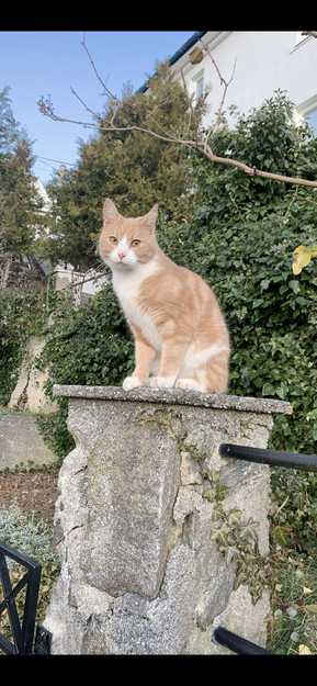 Han har en liten føflekk på nesen. Er orange/beige på ryggen og hvit på mage, ansikt og nederst på beina.