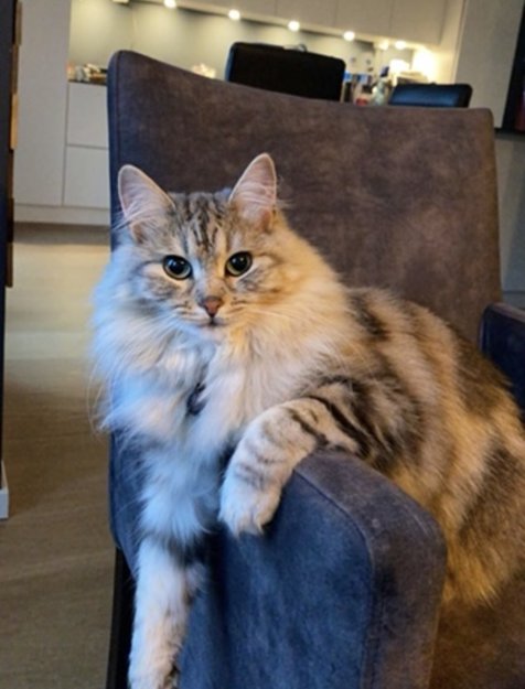 Rosa halsbånd. Hvit manke på brystet. Ellers flekkvis med lyse og grå striper.