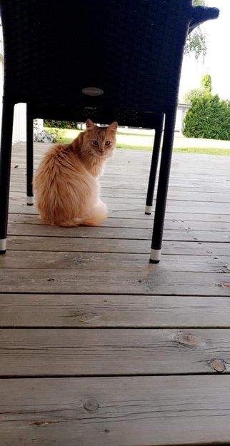 Grønne øyne, hvit hake og hvit på undersiden av kroppen ellers kremfarget (mot oransje). Lang, myk pels. Veldig kosete og kontaktsøkende.