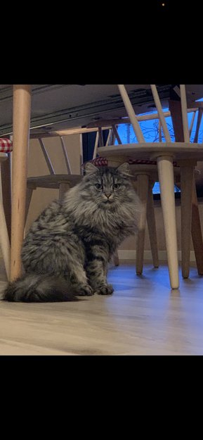 Myk pels. En kul bak på nakken om du kjenner. Ikke farlig kul, sjekket hos dyrlege, men gjør henne lett å kjenne igjen.