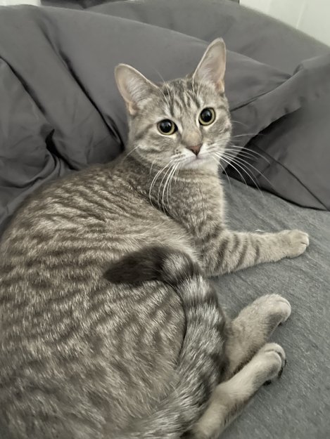 Hun er en nysgjerrig pus, men også litt sjenert. Hun har store, gulgrønne øyne. Hun hører på navnet Mello og godbitposer.