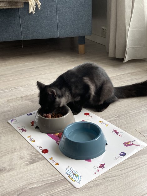 Halen er stor og buskete, pelsen glatt. Hun er litt liten, bare 6 mnd. Hun er barbert på magen, da hun nettopp har blitt sterilisert.