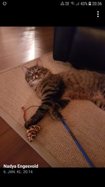 På vei hjem ble matet hos nabo og tatt inn i hus. Ble antagelig forvirret av nytt miljø og mennesker, samt tilgang til mat kontinuerlig. Hadde også godt selskap med nabokatter.