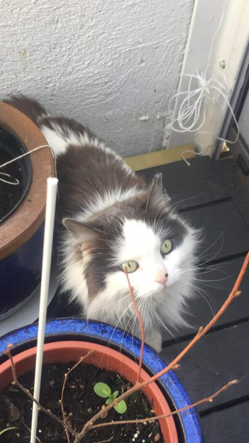Nylig adoptert fra FOD, foreningen for omplassering av dyr og flyttet til nytt hjem. Er savnet fra Grindbakken 20, Oslo. Tam, sosial og veldig glad i å være ute. Slank. Semilanghåret hvit og grå. Mangler tuppen på venstre øre. Barbert bort floker på begge sider av magen.