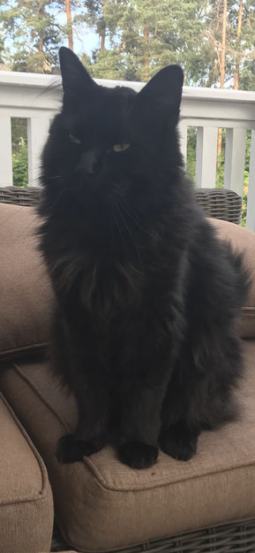 Katten vår Hokus er 9 år og har aldri vært borte fra huset vårt.Han kommer alltid inn eller møter oss når vi roper eller kommer hjem.Ha en litt reservert for fremmede men veldig kosete når han er trygg.