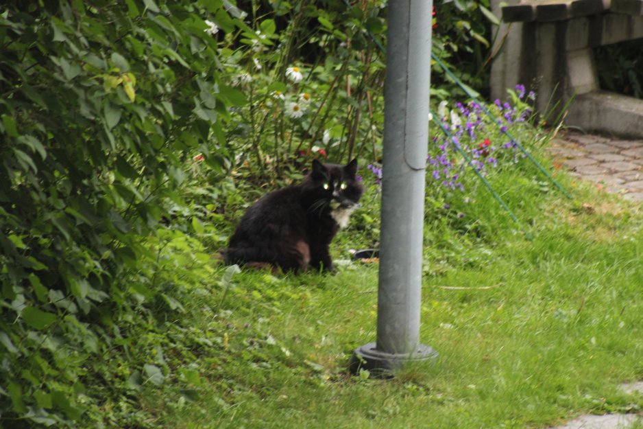 - Katt, Langhåret mørk, hvitt bliss og noe rødt, tricolor, men ser mest mørk ut