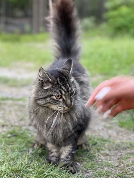 Hei, vi fant denne skjønne katten mens vi var ute rundt 22 tiden. Den virker som en veldig kjærlig katt og kom rett bort for å kose litt. Den var også sulten etter noe å spise. Jeg er usikker på om den vet veien hjem eller om den er savnet, men legger ut i tillfelle den er savnet. Den er langhåret, men ikke veldig stor i str.