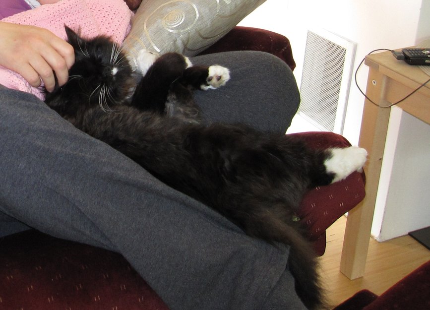 Flekken ble funnet og tatt inn av en snill dame ikke så langt fra der hun hadde forsvunnet, og hun og familien fant denne annonsen på Dyrebar. Dermed er en lykkelig tolvåring gjenforent med sin katt, og Flekken kom glad tilbake fredag. Hun har allerede gjort nabolaget utrygt ved å fange en musunge og en liten fugl, og vært på "lang" tur med toåringen og matmor i skogholtet der vi bor.