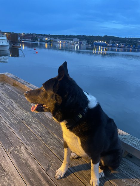 Løpende rundt ved vannet, ingen eier tilstede. Ikke chip.