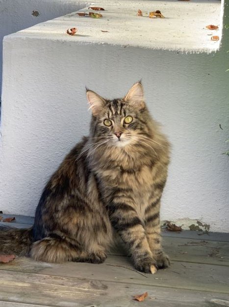 Elli er en blanding av skogskatt og maincoon. Hun har en spraglete/tigerstripete pels, er lys rundt munnen og under haken, høyre forpot har lyst hår. Halen er lang.