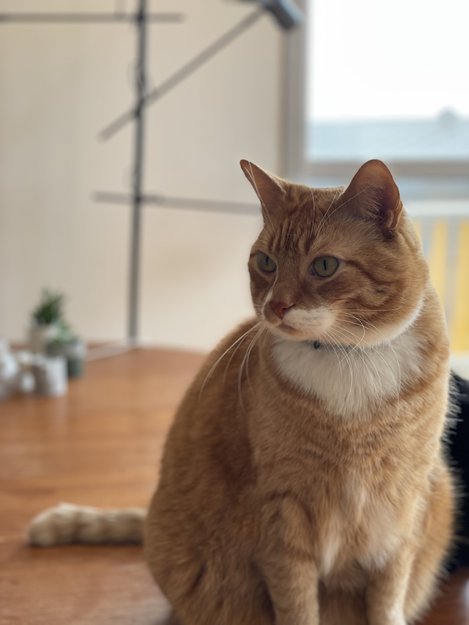 Ganske tjukk med hengemage. Det står Sofus eller Snipp på halsbåndet