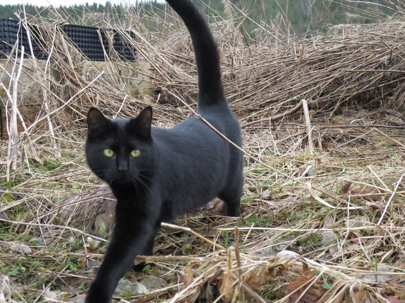7 år gammel svart katt. Mangler begge hjørnetenner i underkjeven. Veldig sky og lett skremt. Snill og kosete når hun er sammen med meg.