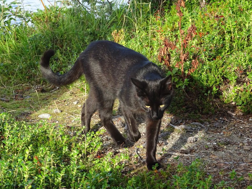 Kan være svart kjælen og legge seg i fanget. Den svarte pelsen har en del hvite enkelyhår.