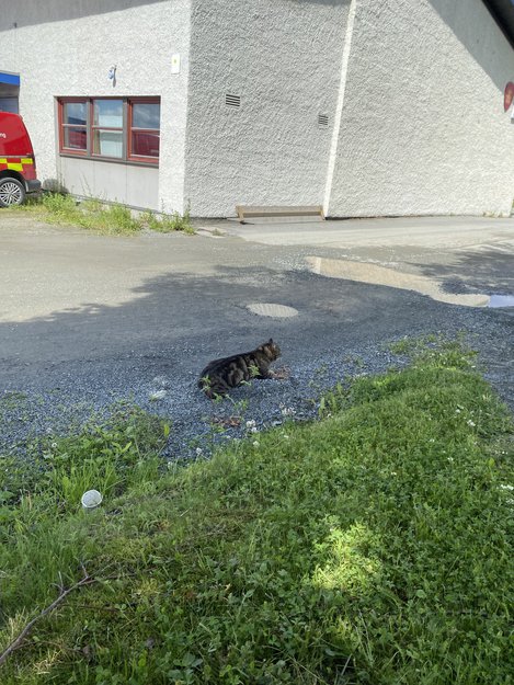 Katt observert ved brannstasjon på Levanger. Virker sky og ikke vandt med mennesker.