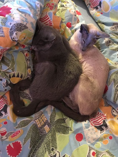 på bildet er hun sammen med venninnen, siameseren Blues.