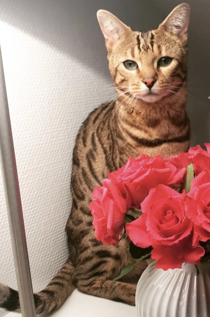 Hun er en liten og slank bengal med litt hengemage og grønne øyne på 5 år. Chippet og kastrert. Hun kan være veldig vokal som bengaler flest.