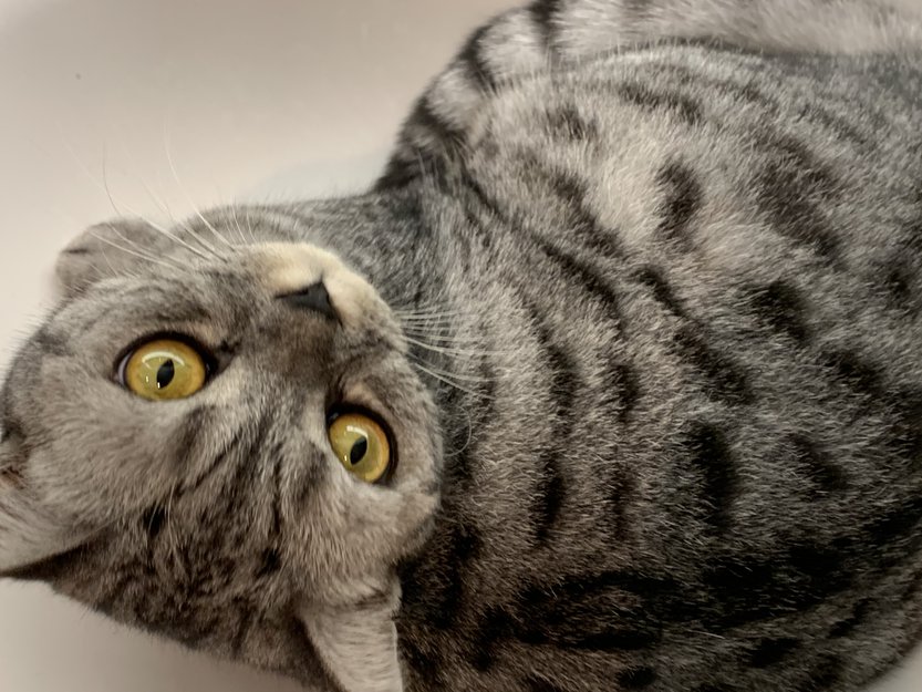 1 år gammel sølvfarget med sorte spotter. Rolig jente men har aldri vært alene ute før og er sikkert redd.
