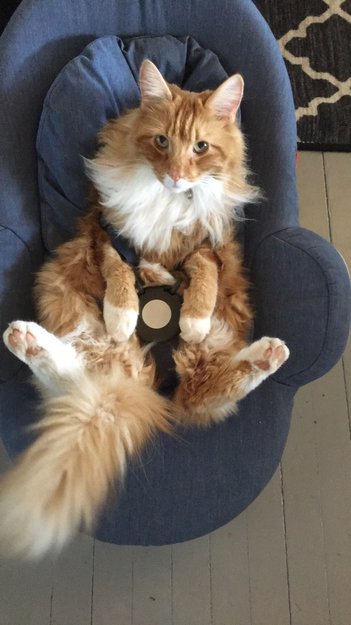 Langhåret veldig tydelig orange og hvit under haka nedover magen.
