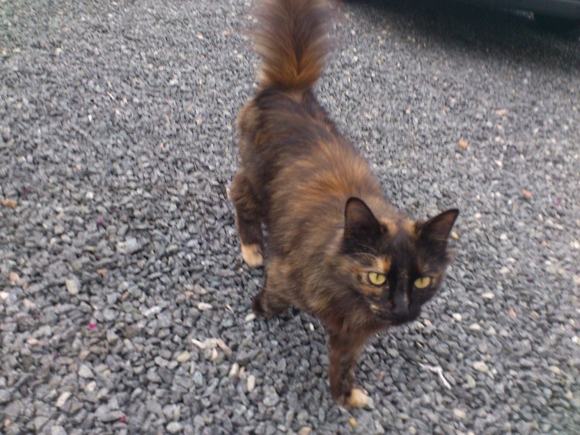Liten katt har holdt til i Ringveien på Tofte en ukes tid. Veldig sulten og tynn.