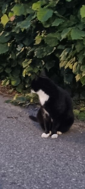 Svart katt med vita poter funnit, följde hem till Lofthus.